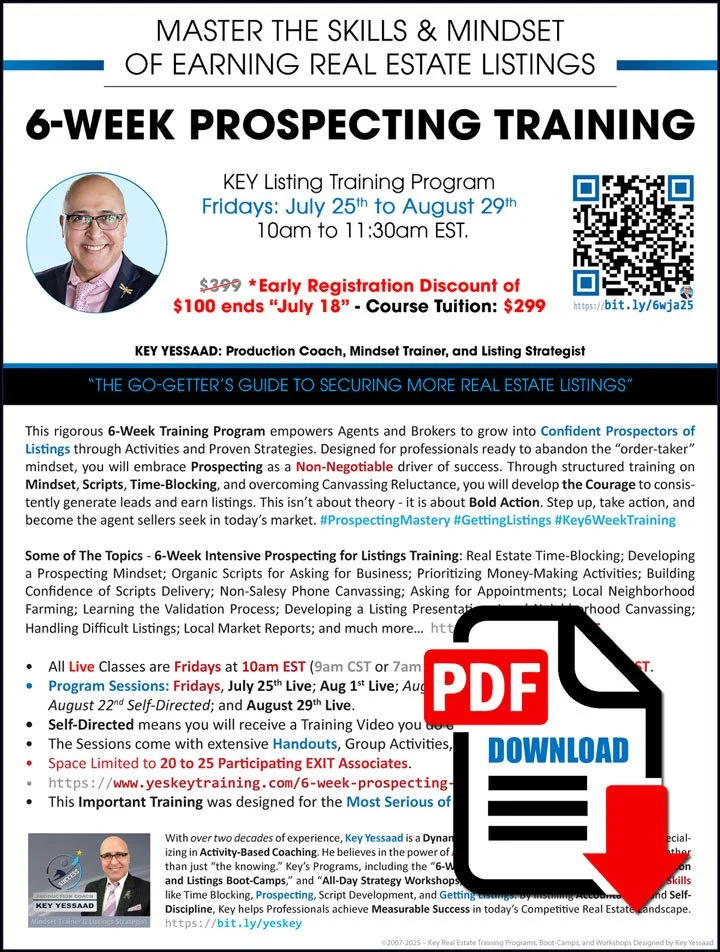 Please Scroll Up for more information about the July-August 2025 6-Week Prospecting for Listings Training Program!