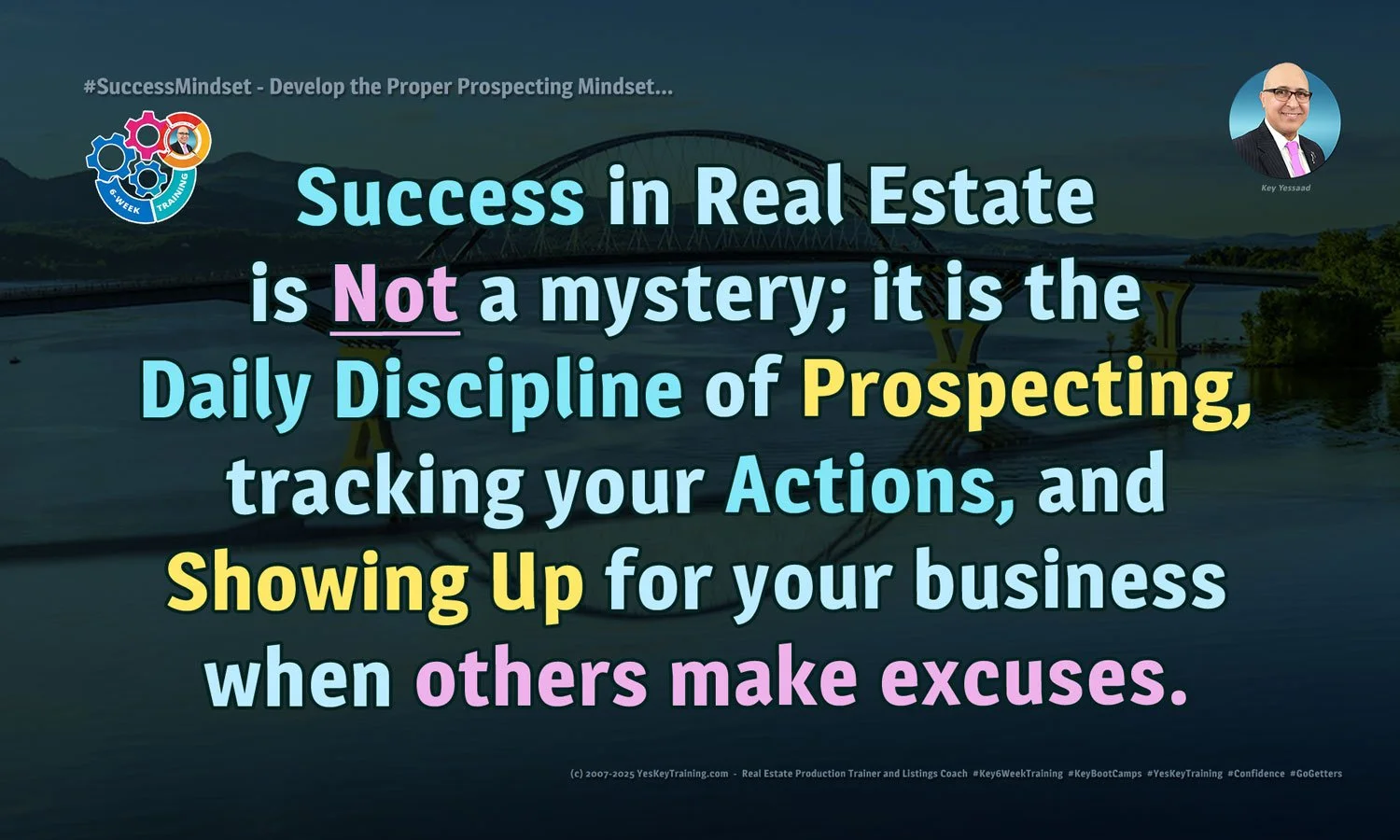Success in Real Estate is Not a mystery; it is the Daily Discipline of Prospecting, tracking your Actions, and Showing Up for your business when others make excuses.