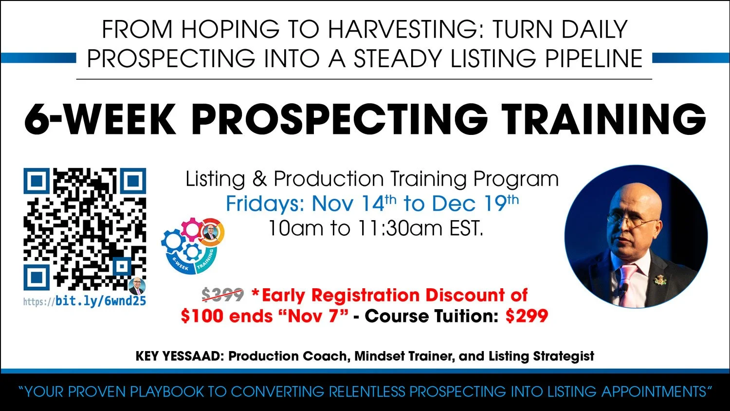 Sep-Oct 2025 6-Week Training URL: https://www.yeskeytraining.com/6-week-prospecting-training-nd-2025