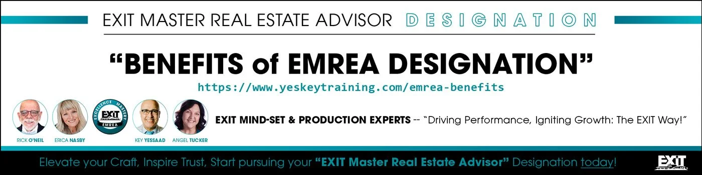 Note: We Recognize that True professionals do Not pursue the “EXIT Master Real Estate Advisor (EMREA) Designation” solely for the benefits it offers - those are merely Added Rewards. They earn this designation to Send a Clear and Powerful Signal to the market: they are Not average, and their commitment to Professionalism, Mastery, and Excellence sets them apart. This Designation is a testament to their Dedication to ongoing growth, their mastery of Strategic Real Estate Skills, and their unwavering focus on delivering Exceptional Results for their clients. It is Not about the perks – it is about Standing Out, elevating their reputation, and showing the world that they are serious about being “the best” in the industry.